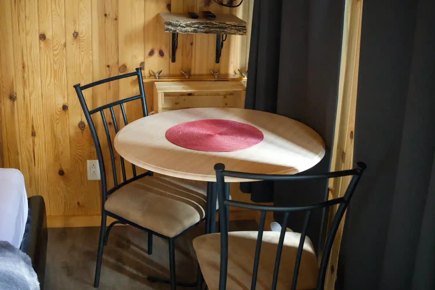 À l’intérieur, vous trouverez un espace chaleureux et bien pensé, équipé de tout le nécessaire : mini-réfrigérateur, petite cuisinière, toilettes sèches et chauffage pour les nuits plus fraîches. Le barbecue et l’éclairage privés créent une atmosphère chaleureuse, tandis que le ventilateur intégré assure votre confort pendant les journées plus chaudes.