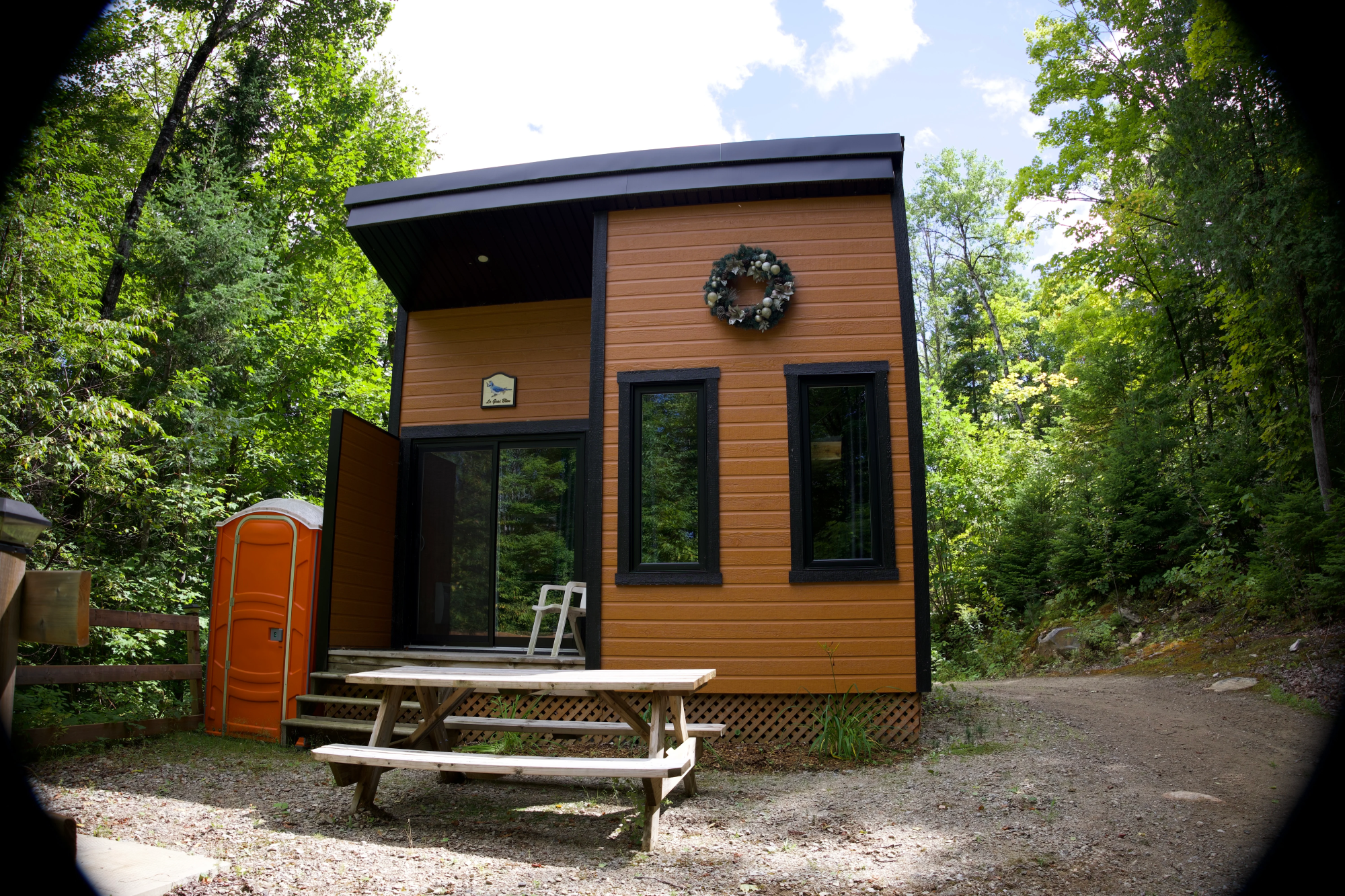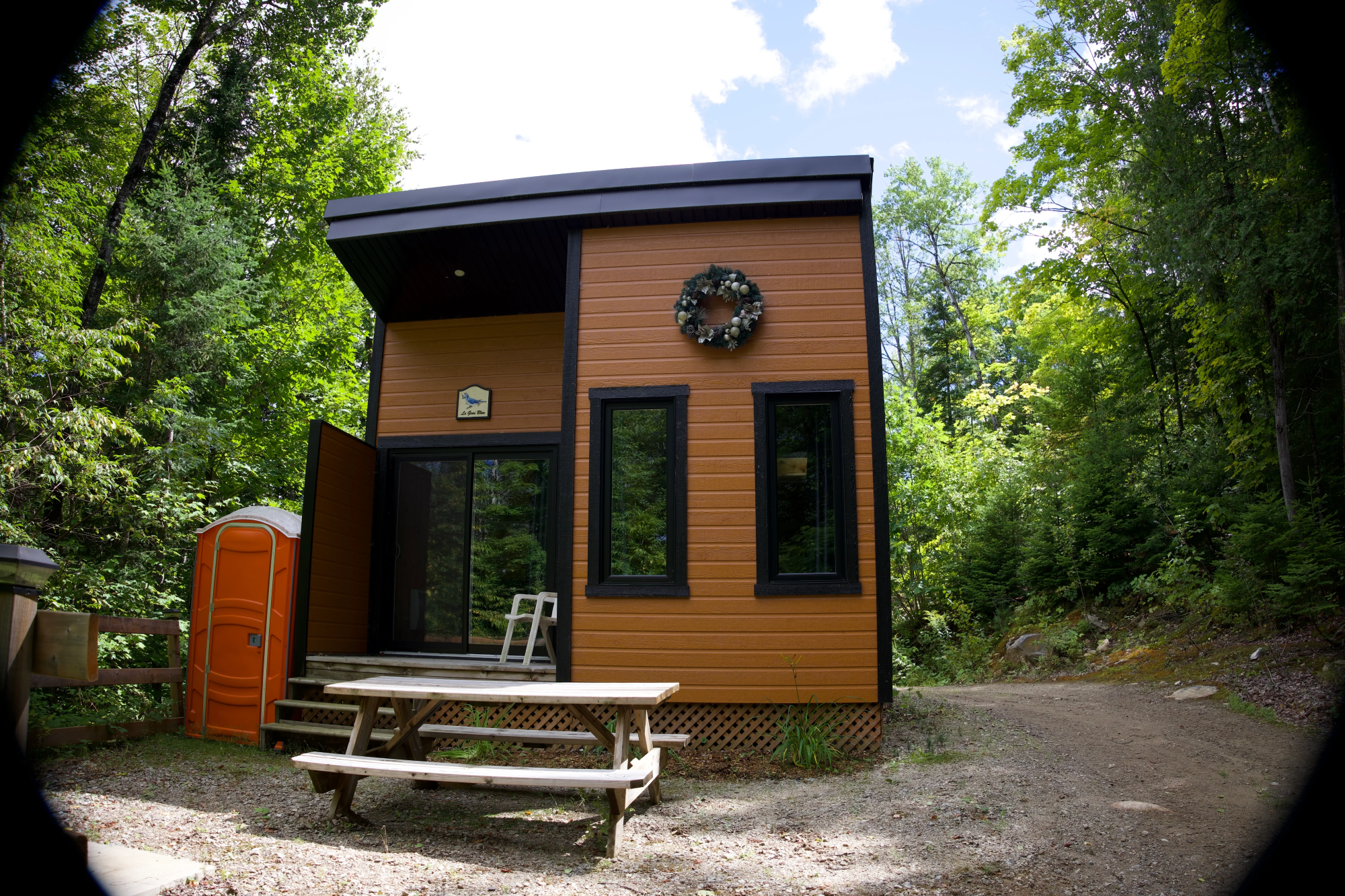 - Équipements : , chauffage, Distributeur d’eau (chaude et froide), éclairage, Foyer extérieur, Mini-four et micro-ondes, Mini-Fridge and induction, petite poêle, Spa, Table et chaise, toilettes sèches, TV, Vaisselles et bouilloire, ventilateur, Wi-Fi