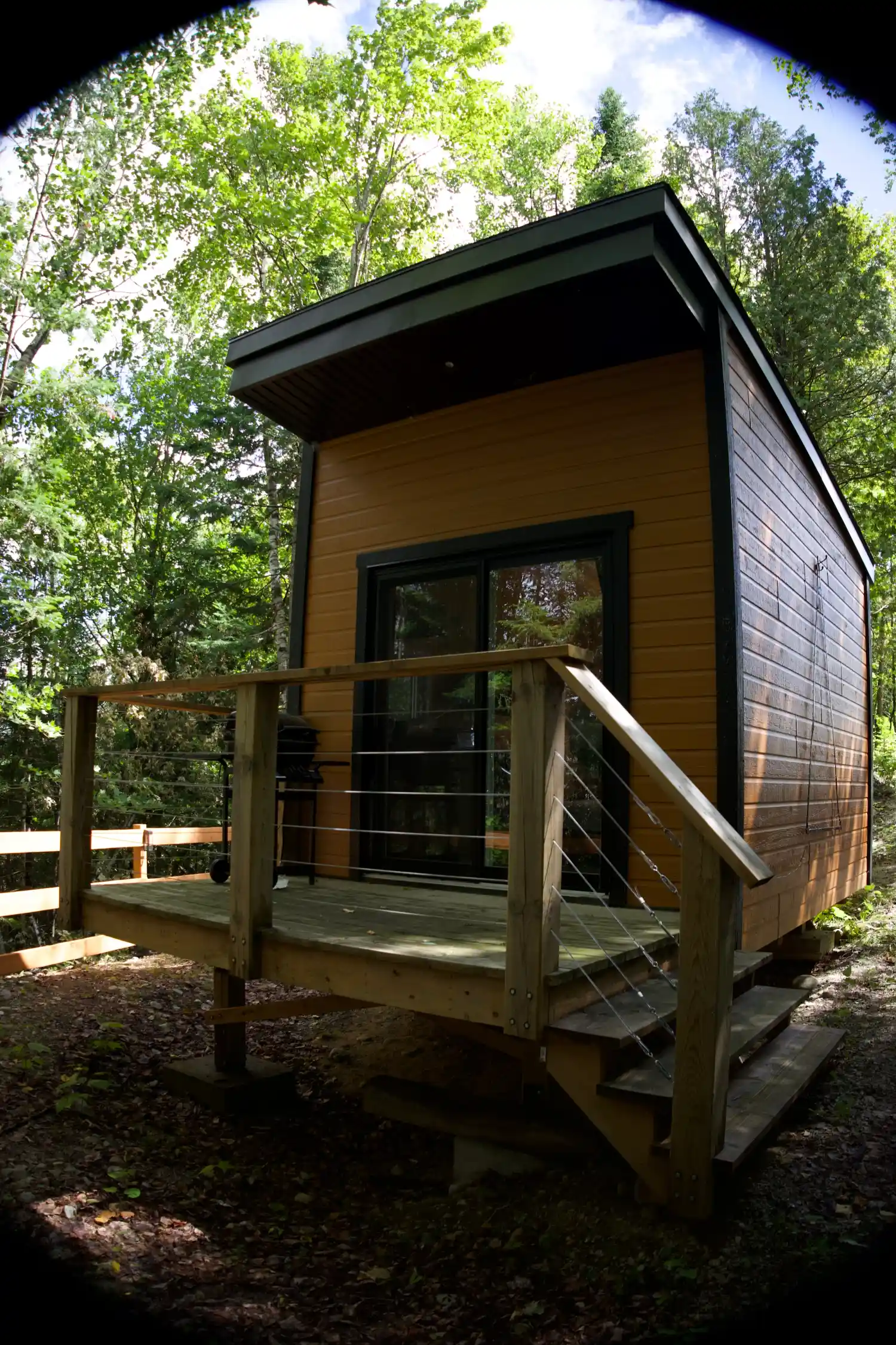 - Équipements : , chauffage, Distributeur d’eau (chaude et froide), éclairage, Foyer extérieur, Mini-four et micro-ondes, Mini-Fridge and induction, Spa, Table et chaise, TV, Vaisselles et bouilloire, ventilateur, Wi-Fi