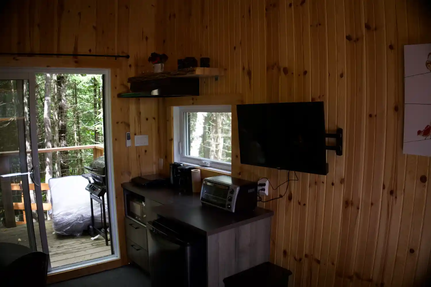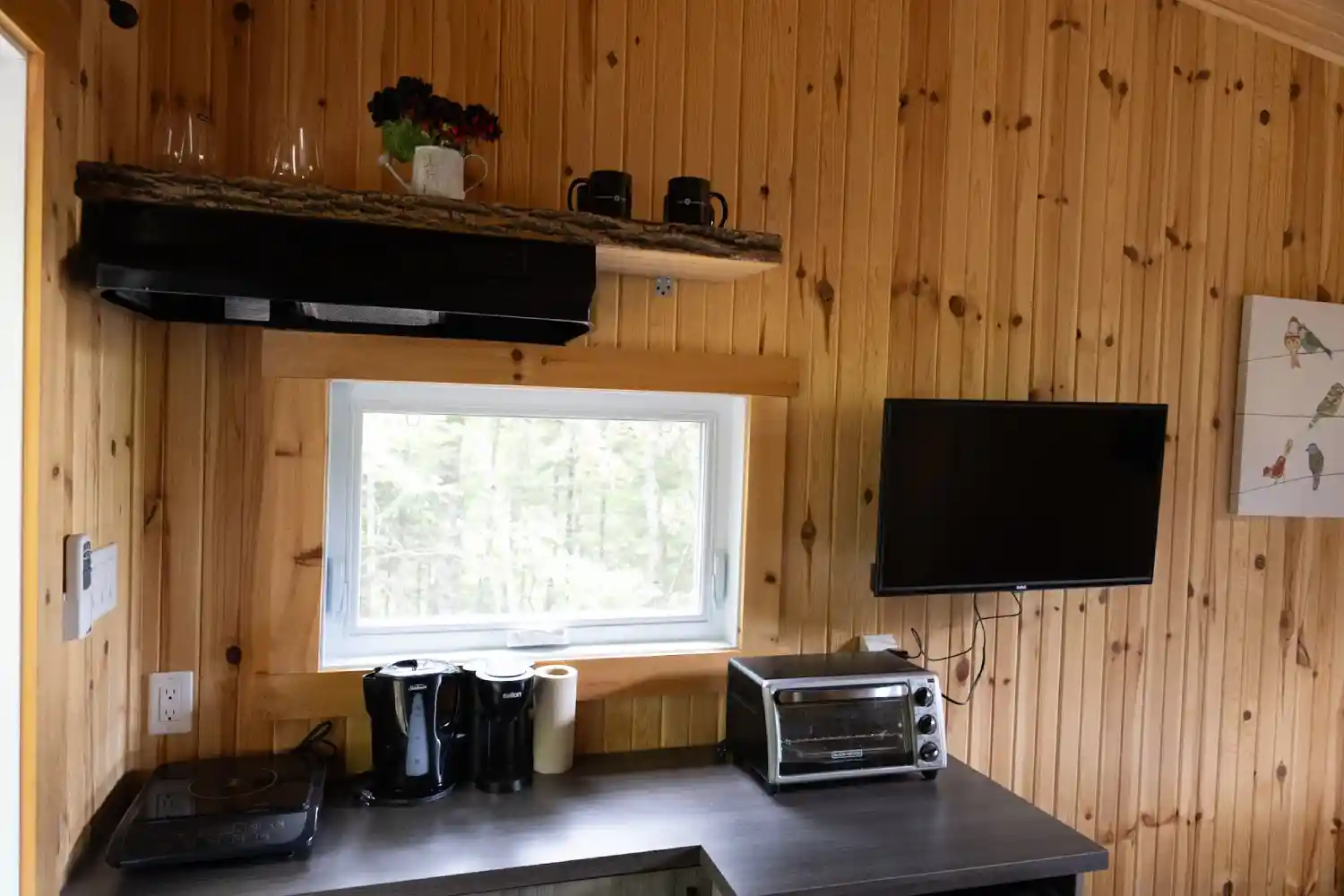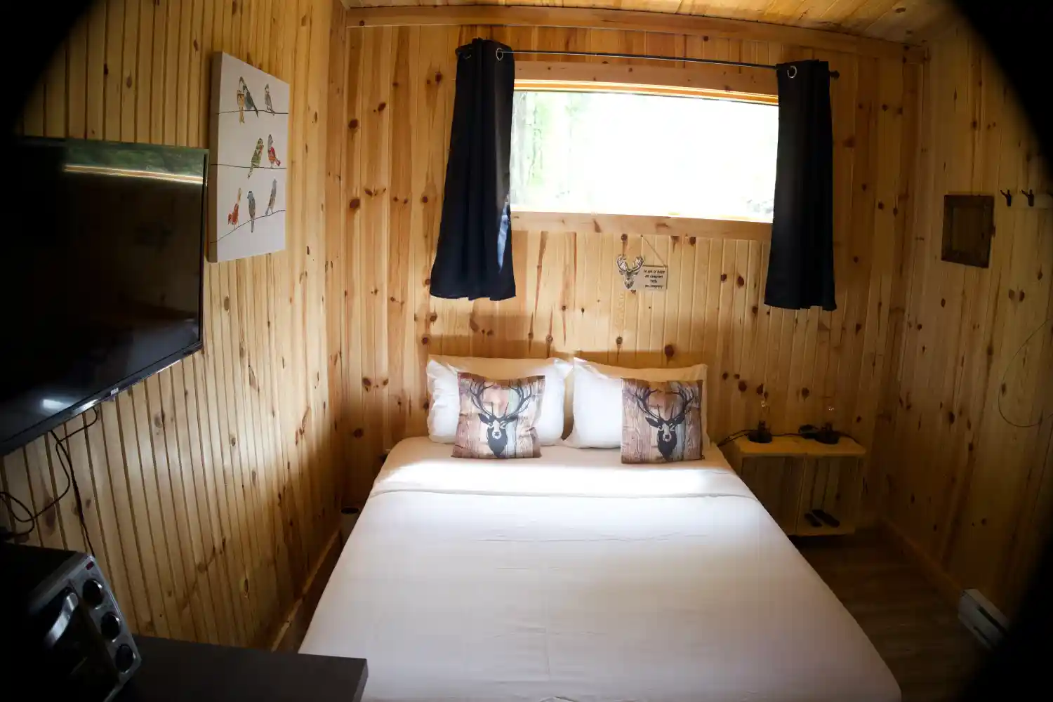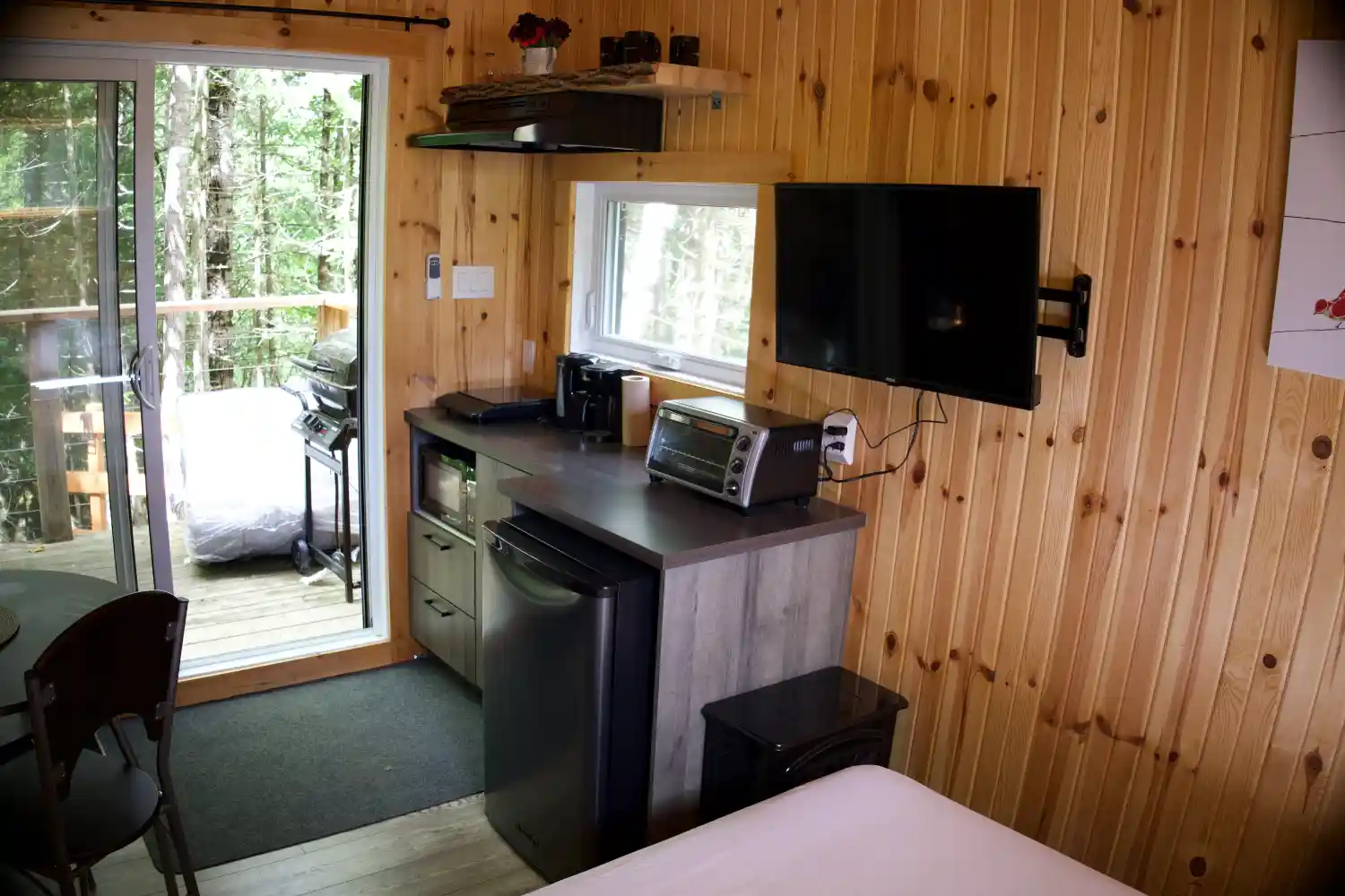 Niché dans la beauté naturelle de Saint-Côme, ce chalet est équipé de tout le confort nécessaire : une télévision pour des soirées relaxantes, un mini-réfrigérateur, une petite cuisinière, l’éclairage, le chauffage, un barbecue et un ventilateur. La tranquillité environnante favorise votre expérience de paix et de reconnexion.